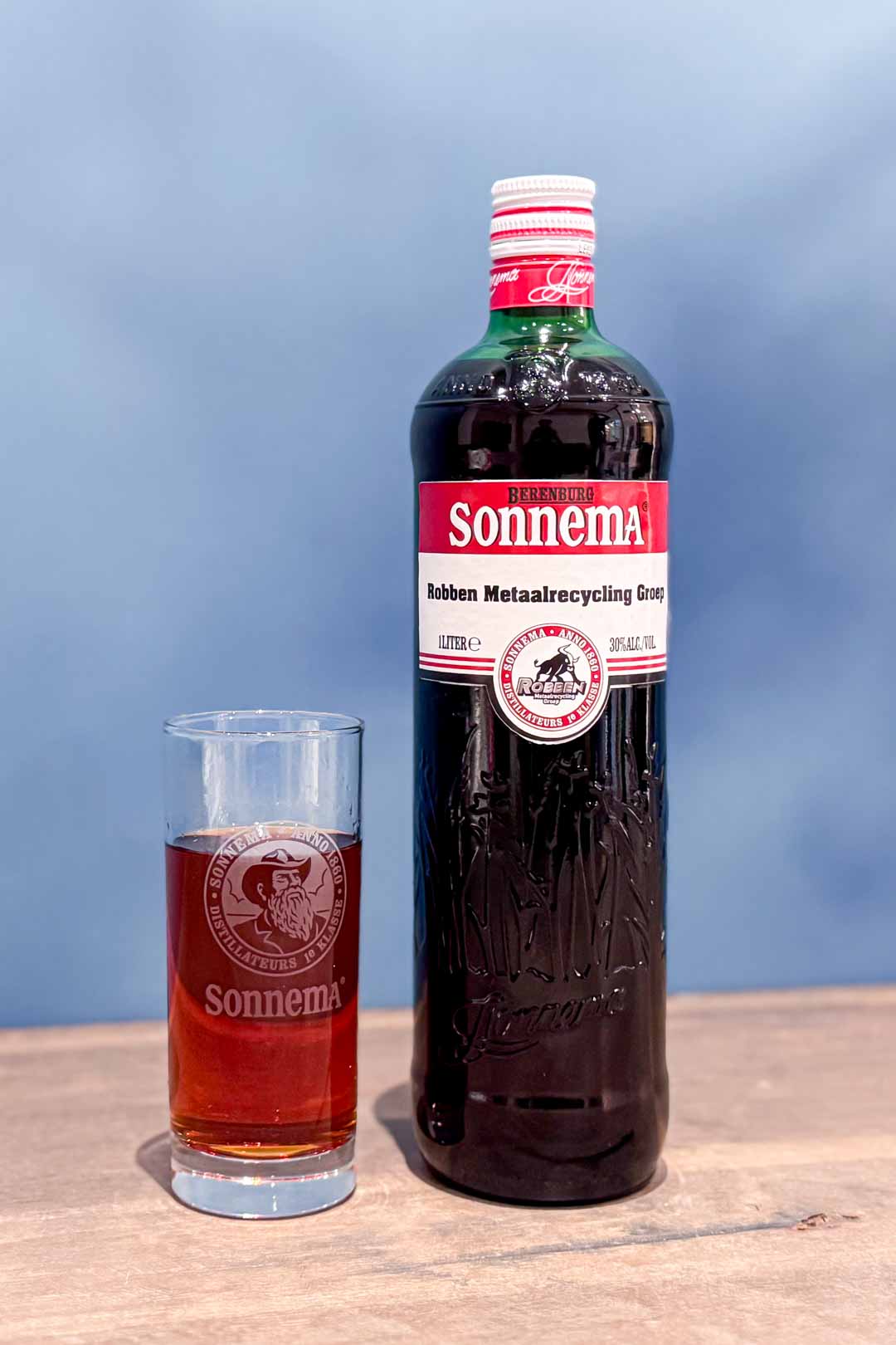 Door de naam van Robben Metaalrecycling toe te voegen aan het etiket krijgt de fles een persoonlijke uitstraling, terwijl de herkenbare stijl van Sonnema volledig intact blijft. Dat maakt dit cadeau ideaal: vertrouwd voor de ontvanger, maar toch uniek.